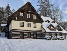 Very beautiful apartment house 700 m a.s.l., 3 storeys. 12 apartments in the residence. 400 m from the centre of Harrachov, on the outskirts, 28 km from the centre of Jablonec nad Nisou, 12 km from the centre of Rokytnice nad Jizerou, in a sunny position, 50 m from the edge of the forest, 1.3 km from the skiing area. For shared use: property, meadow. In the house: storage room for skis. Parking (limited number of spaces) on the premises. Shop 100 m, supermarket 400 m, bus stop Harrachov, centrum 600 m, railway station Harrachov-Mýtiny 3 km, outdoor swimming pool 400 m, indoor swimming pool 100 m. Golf course (18 hole) 39 km, ski lift 300 m, chair lift 1.3 km, slopes 300 m, ski rental 1.3 km, ski school 1.3 km, children's ski school 1.3 km, children's playground 300 m. Nearby attractions: Mumlava vodopád 2.5 km, Kořenov 8 km, Jizerka 15 km, Jablonec nad Nisou 29 km, Jablonec nad Nisou 40 km, Termy Cieplickie(Pl) 30 km. Well-known ski regions can easily be reached: Harrachov 1.3 km, Příchovice 10 km, Rokytnice nad Jizerou 15 km. Hiking paths: Western City Karpacz(Pl) 40 km, Park miniatury Kowary44km,Karpacz (Pl) 39 km, Giganteria Piechowice(Pl) 23 km.